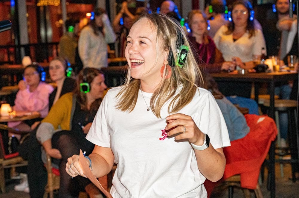 Tijdens de Silent Bingo Show draait alles om een persoonlijke en interactieve ervaring. Je kunt kiezen voor een plek voor 2 of 4 personen, maar ook grotere groepen zijn welkom. Het reserveringssysteem zorgt ervoor dat iedereen samen kan zitten door tickets onder dezelfde naam te boeken. Door te werken met tijdsloten verloopt het ophalen van koptelefoons soepel en zonder gedoe.