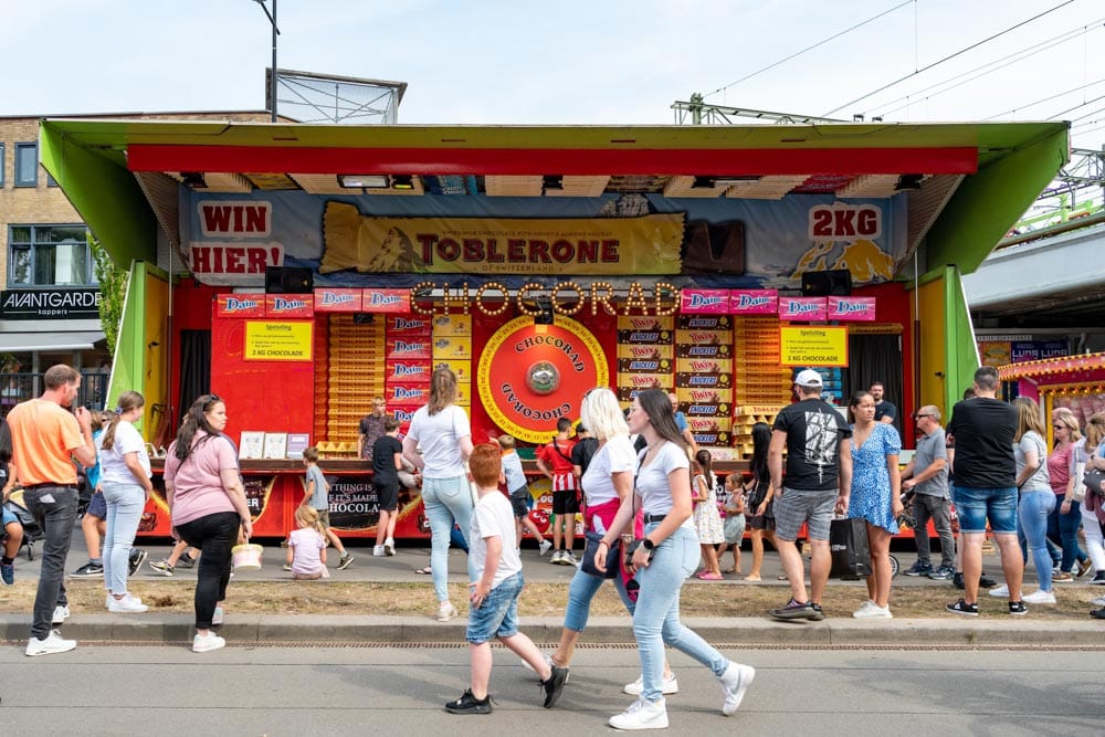 Bij winst bij het Chocoladerad op de kermis maak jij kans op een grote berg chocolade. Durf jij dit zoete spel van de kermis aan?