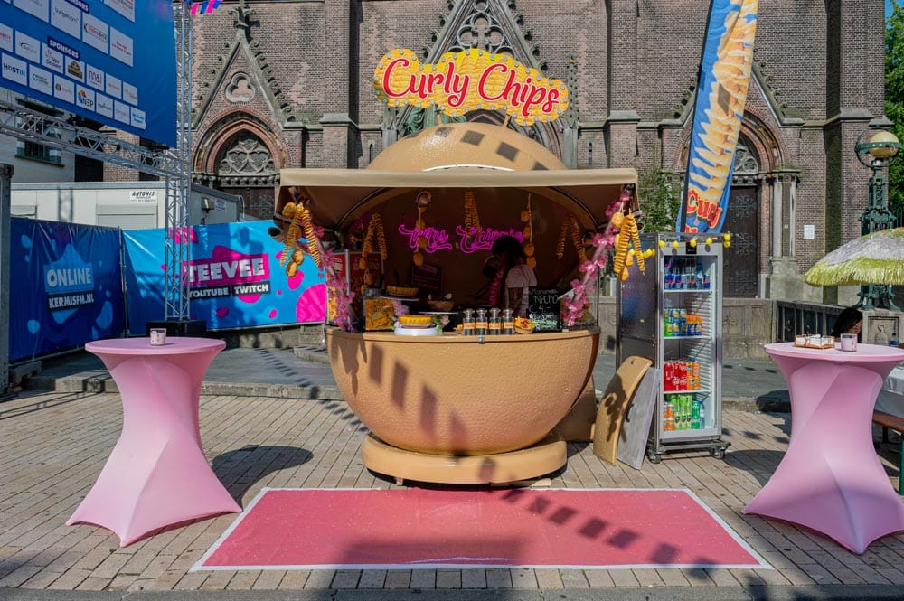 Bij de kermisattractie Curly Chips geniet je van de lekkerste, knapperigste krulfrietjes die je maar kunt bedenken. Een onweerstaanbare snack voor jong en oud!