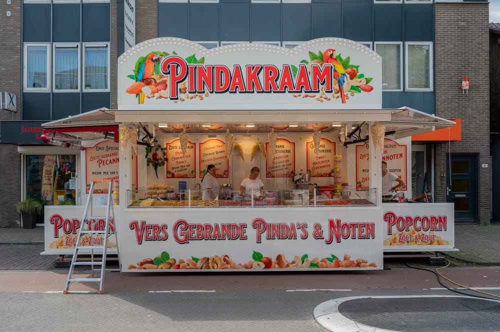Bij de Notenbar op de kermis geniet je van een uitgebreide selectie van verse, knapperige noten – perfect voor thuis of om onderweg van te smullen.