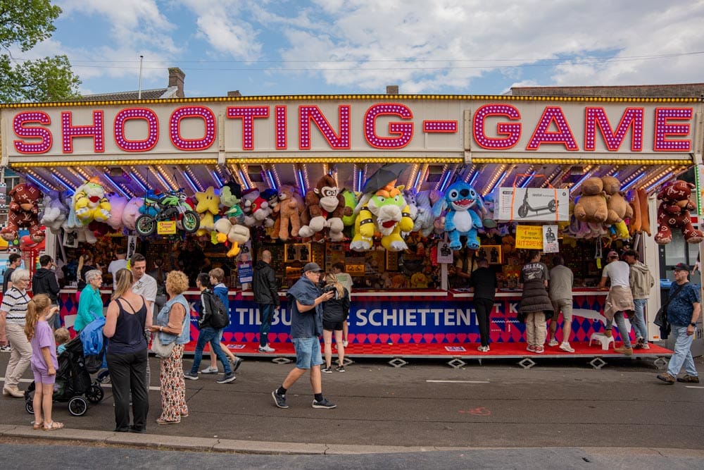 Raak jij ook altijd het doelwit bij de kermisattractie Schietsalon? Dan mag je een leuke prijs uitzoeken uit de kraam!