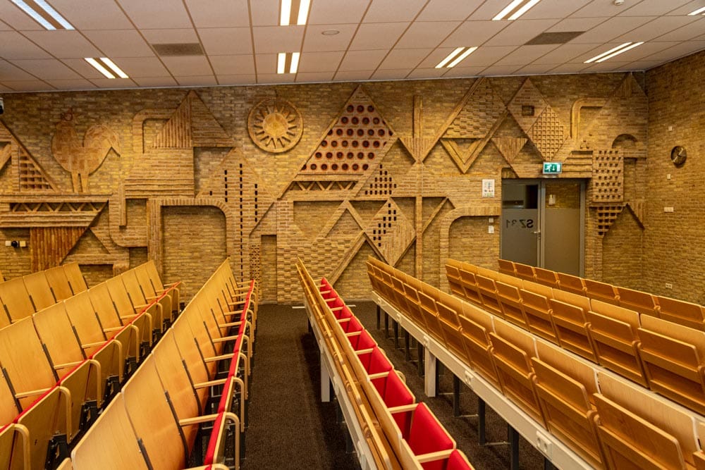 Het kunstwerk ‘Muurreliëf Simon Building’ is gemaakt door Luc van Hoek in 1975. Het muurreliëf bevindt zich in het Simon Building van Tilburg University in Tilburg-West. Het kunstwerk is een zogenaamd baksteenreliëf, waarbij de natuur een belangrijke rol speelt als inspiratie. Maar ook korenschoven, karrewielen en beesten zijn als inspiratiebron gebruikt. ‘Muurreliëf Simon Building’ van Luc van Hoek is een van de resultaten van de vele samenwerkingen met architect Jos Bedaux (1910-1989).