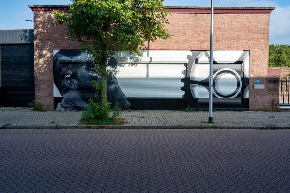 De muurschildering toont een baardige figuur met een bril aan de linkerkant en een tandwiel aan de rechterkant, geïnspireerd op het unieke logo van Fabriekskwartier, ontworpen door reclamestudio YOMAN. Abdalwahed bracht dit logo tot leven op een manier die de identiteit van het gebied versterkt en de industriële kracht en vooruitgang benadrukt.