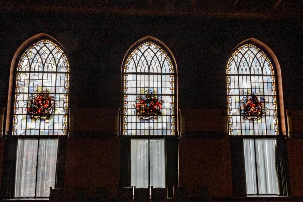 De ‘Glas in lood Allegorische voorstellingen’ is gemaakt door Piet Clijsen in 1936. Het kunstwerk bevindt zich in het Paleis Raadhuis in Tilburg. De thema’s die je in dit kunstwerk terugziet zijn: arbeid, handel en industrie. Zij verwijzen naar de R.K.Handelshogeschool, de Kamer van Koophandel en de R.K. Leergangen.