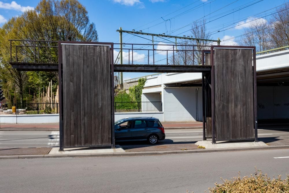 Met de ‘over-functioneel’ vormgegeven constructie van het viaduct als decor, laat het zien dat waar de functie verdwijnt, de kunst een mogelijkheid krijgt te verschijnen.