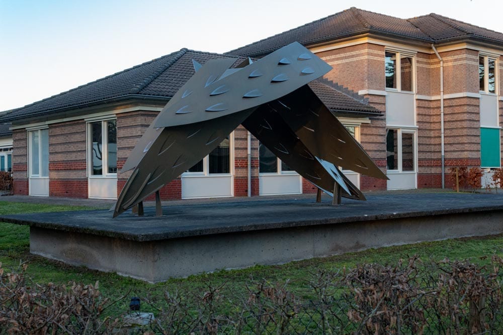 Kunstwerk Mantel der Liefde is te vinden op het terrein Het Hoge veer van Amarant en is gemaakt door Tine de Weyer. Het Kunstwerk maakt deel uit van een serie kunstwerken die gemaakt zijn door De Weyer sinds 1984 waarbij ze zich liet inspireren door het thema vleugels. De combinatie en van titel en het kunstwerk valt het beschuttende karakter van het kunstwerk meteen op. En de plaatsing op het terrein Het Hooge veer van Amarant past daar als beschermende gemeenschap ook bij.