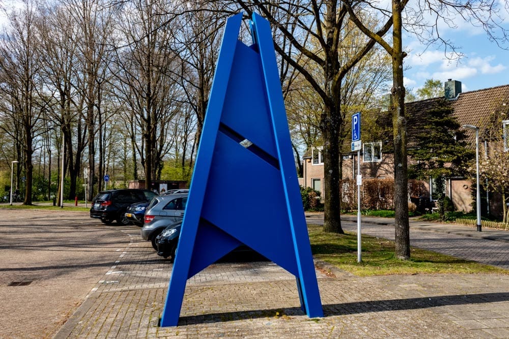 Kunstwerk Zonder Titel (Frans van den Bighelaar) is te vinden naast sporthal de Blaak in Tilburg en is in 1984 geplaatst en is gemaakt van staal. De opdracht voor het kunstwerk was het ontwerpen van een decoratieve aankleding het gebouw. Echter staat het kunstwerk helemaal los van het gebouw. Echter zijn er wel overeenkomsten in het werk en het gebouw: De vorm van het kunstwerk is een prisma wat afgeleid is van het dak van de sporthal van het gebouw en een verwantschap is er ook in de kleur van het kunstwerk en bepaalde elementen van het gebouw. De kunstenaar heeft door deze elementen in het kunstwerk toe te passen ervoor gezorgd dat er een binden ontstaan tussen het gebouw en het kunstwerk en zijn omgeving. Ook in de bestrating komt de verbinding terug. In het straatwerk is namelijk een afgeknotte prisma terug te vinden. Door deze toevoeging is het kunstwerk visueel stevig verankerd met de plaats waar het staat.