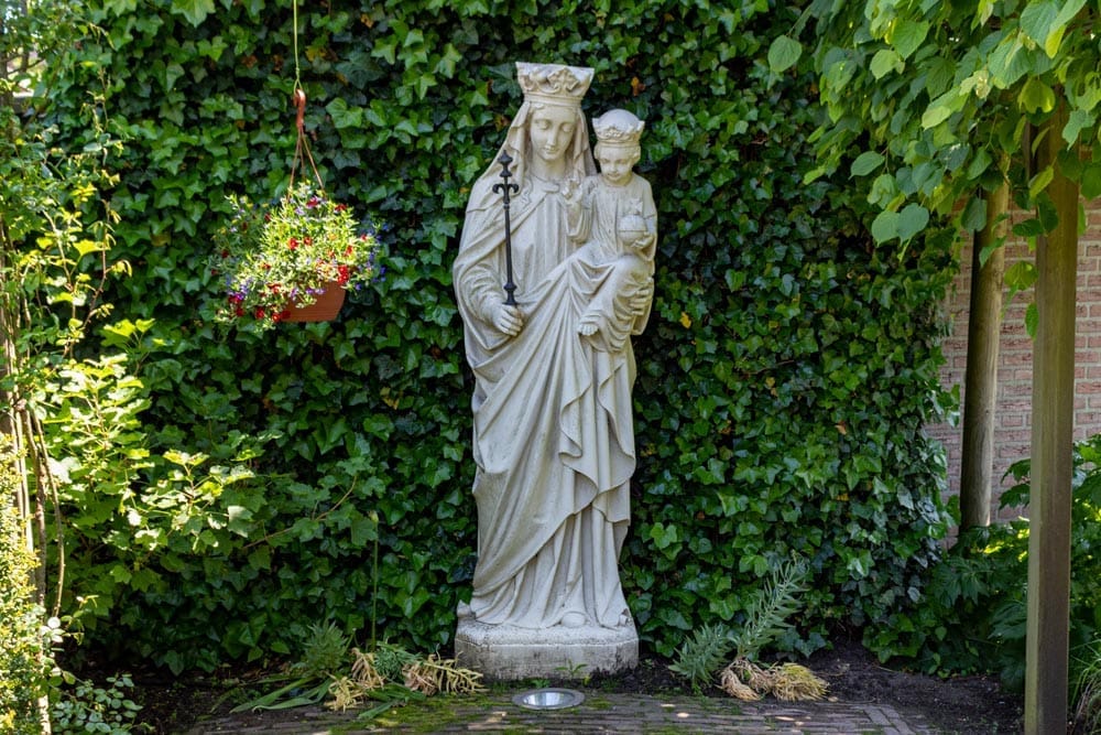 Mariabeeld Koningin is te vinden in de Tuin van de Fraters van Tilburg aan de Noordhoekring in de Wijk in Theresia in Tilburg.