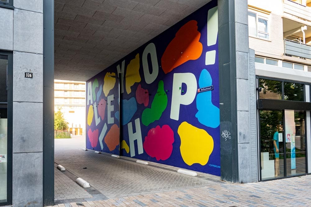 De creatieve krachten achter Opperclaes hebben zich niet beperkt tot straten, pleinen of stoepen; ze hebben hun kunstzinnige visie naar de verticale dimensies gebracht. Het Rotterdamse duo heeft met een grootschalige muurschildering een ogenschijnlijk alledaagse muur omgetoverd tot een levendig kunstwerk van formaat. Samen met Block013 hebben ze een saus van “Kaapstad-vibes” over het geheel gegoten, waardoor de muur lijkt uit te nodigen om er tegenaan te klimmen. Vergelijkbaar met de opmerkelijke basketbalbeweging waar “De Alley Hop” naar knipoogt, de “Alley-oop”, is het echter niet voor gewone stervelingen weggelegd om zo hoog te reiken. We kunnen alleen maar dromen van zulke lange armen en explosieve beenspieren die daarvoor nodig zijn.