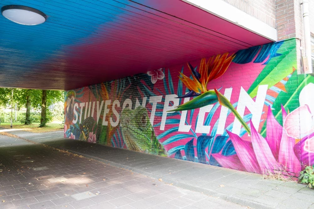 De muurschilderingen op het Stuivesantplein zijn een levendige toevoeging aan dit stadsdeel. Geïnspireerd door de weelderige natuur, dragen deze schilderingen de naam van het plein en hebben ze als doel om het imago van de onderdoorgang bij het plein in de wijk Broekhoven op te frissen en veiliger te maken. De kleurrijke jungle-afbeeldingen brengen een nieuwe uitstraling die zowel verfrissend als veilig aanvoelt.