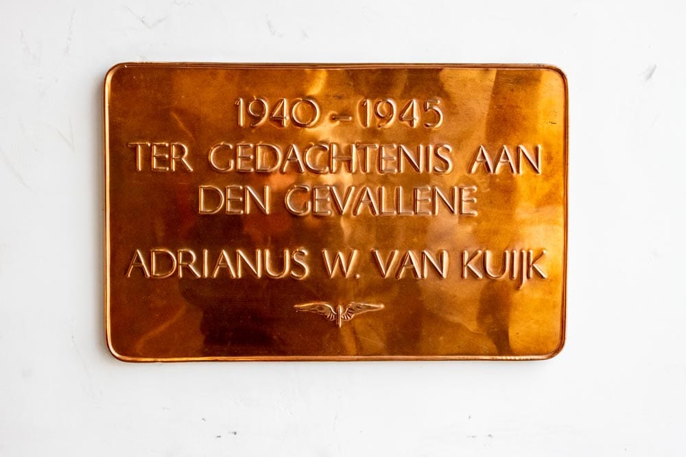 ‘1940-1945 TER GEDACHTENIS AAN DEN GEVALLENE ADRIANUS W. VAN KUIJK’.