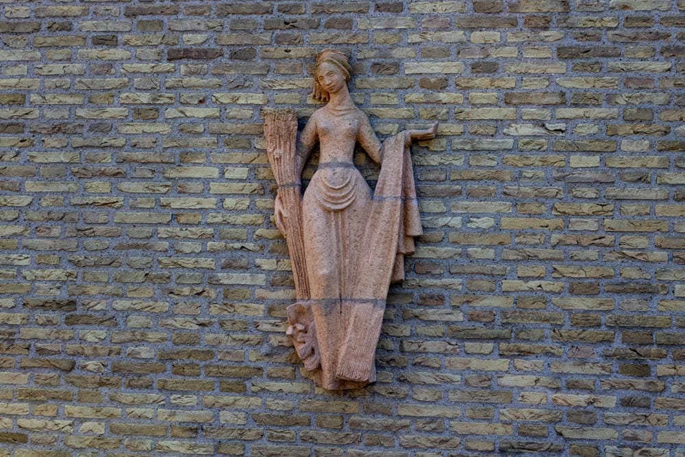 Reliëf Voorspoed is te vinden op de gevel van het Simon gebouw in Tilburg een is van de Beeldhouwer Luc van Hoek
