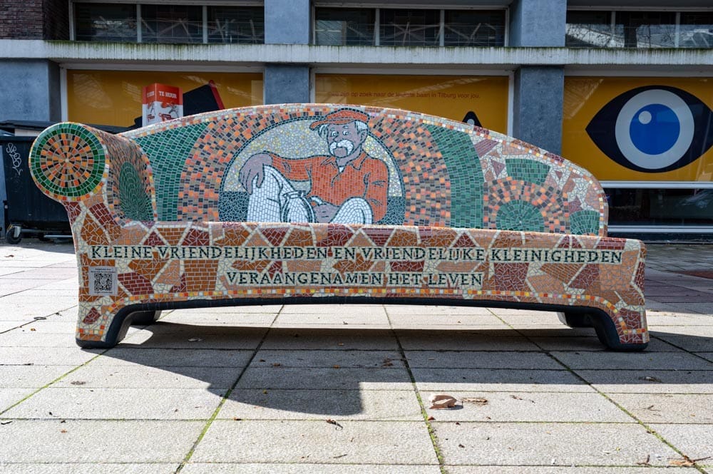 Tilburg Station heeft een nieuwe, kleurrijke toevoeging gekregen die het wachten op de trein een stuk aangenamer maakt. De Social Sofa, een prachtig mozaïekbankje, is een bijzonder jubileumgeschenk ter ere van het 50-jarig bestaan van Schrobbelèr, het iconische Nederlandse likeurmerk. Dit unieke bankje werd feestelijk onthuld tijdens het jubileumfeest in september 2023 en is nu permanent te bewonderen op het station sinds zijn plaatsing in november 2023.