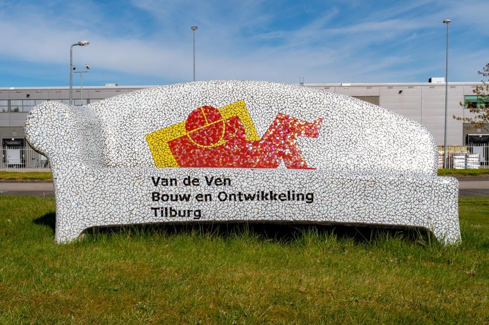 De indrukwekkende Social Sofa ter ere van het 90-jarig bestaan van Van de Ven Bouw & Ontwikkeling kan je vinden bij het hoofdkantoor van het bedrijf in Tilburg. Dit bankje is een eerbetoon aan de rijke geschiedenis, het vakmanschap en de innovatie die het bedrijf gedurende negen decennia heeft laten zien.