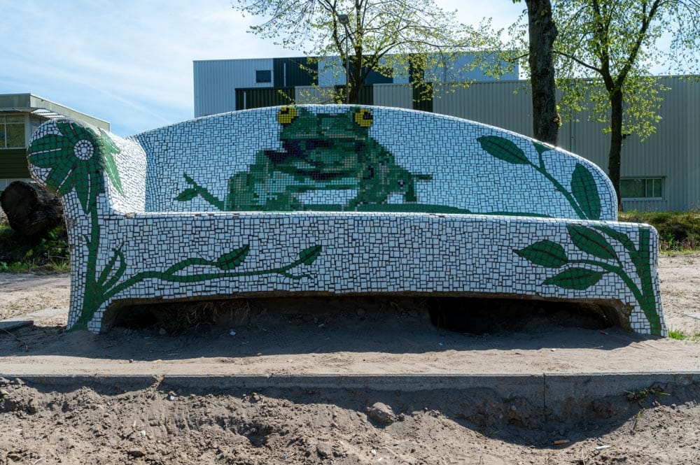 Op bedrijventerrein Kraaiven in Tilburg, in de Wolterbeekstraat, kun je een levendige Social Sofa Kikker vinden.