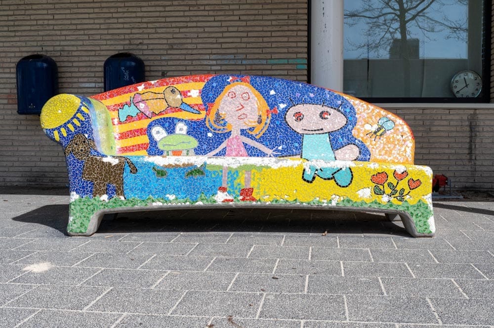 De Social Sofa Kindertekeningen bevindt zich op het schoolplein van Basisschool Koolhoven in de wijk Koolhoven in Tilburg.