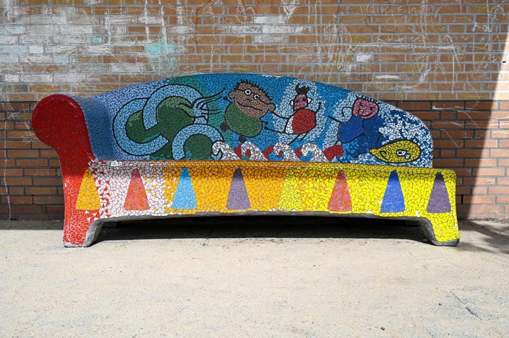 Elke Social Sofa is uniek en vertelt een eigen verhaal door middel van de mozaïekpatronen die erop zijn aangebracht. Vaak worden lokale thema’s, symbolen, geschiedenis of culturele elementen in de ontwerpen verwerkt, waardoor de sofa’s een bijzondere betekenis krijgen voor de gemeenschap waarin ze geplaatst zijn.