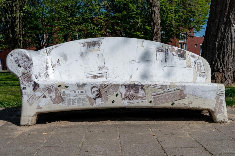 De Social Sofa Protest/Kranten is gelegen op het Laurens Kosterplein, gelegen in de wijk Trouwlaan-Uitvindersbuurt in Tilburg.
