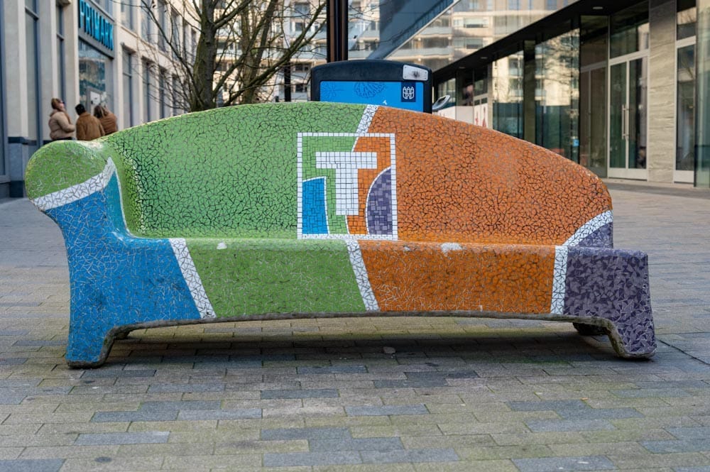 Elke Social Sofa is uniek en vertelt een eigen verhaal door middel van de mozaïekpatronen die erop zijn aangebracht. Vaak worden lokale thema’s, symbolen, geschiedenis of culturele elementen in de ontwerpen verwerkt, waardoor de sofa’s een bijzondere betekenis krijgen voor de gemeenschap waarin ze geplaatst zijn.