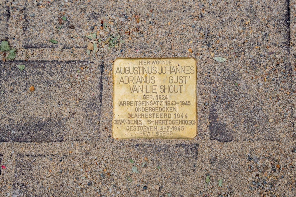 In Tilburg is op 30 april 2025 een struikelsteen geplaatst ter nagedachtenis aan Augustinus Johannes Adrianus (Gust) van Lieshout. Gust overleefde de Duitse dwangarbeid niet. Omdat zijn ouderlijk huis aan de Lijsterstraat is gesloopt, kreeg de gedenksteen een plek aan de overkant, bij de Merelhof. Hiermee wordt zijn naam opnieuw genoemd in de straat waar hij opgroeide.