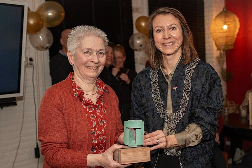 Mariëtte van Bavel ontving de Tilburg Trofee bij haar afscheid als beleidsmedewerker van de Sociale Raad Tilburg (SRT). De uitreiking vond plaats tijdens haar afscheidsbijeenkomst bij Broodje Aap & Linke Soep in Tilburg