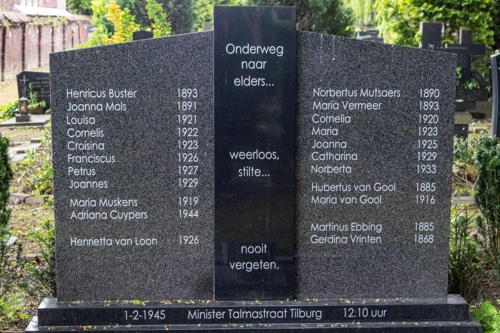 Het monument V1 Minister Talmastraat Tilburg is te vinden op RK Begraafplaats Het Goirke aan de Goirkestraat in Tilburg